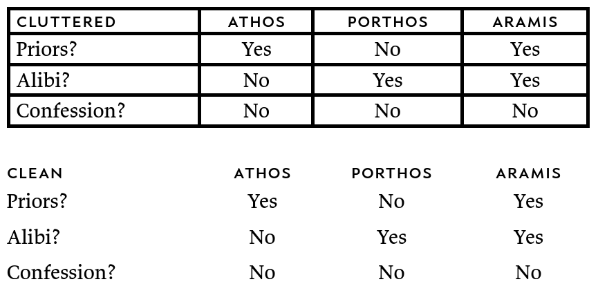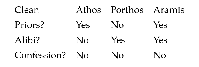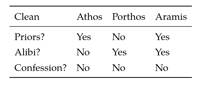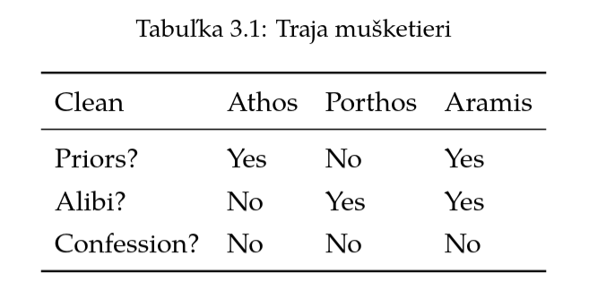 \caption{Traja mušketieri}\label{tab:three-musketeers}